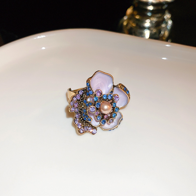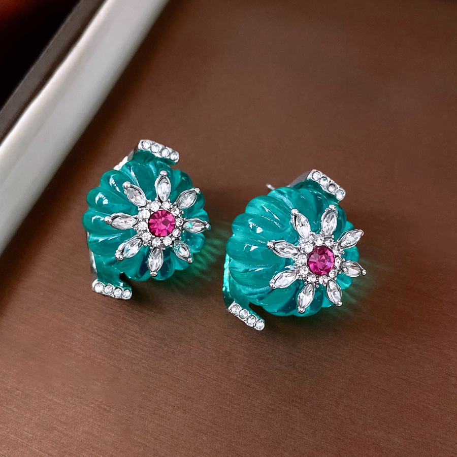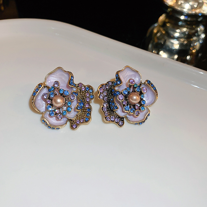 11# silver needle-diamond shijia pearl oil-spot glaze flowers stud earrings