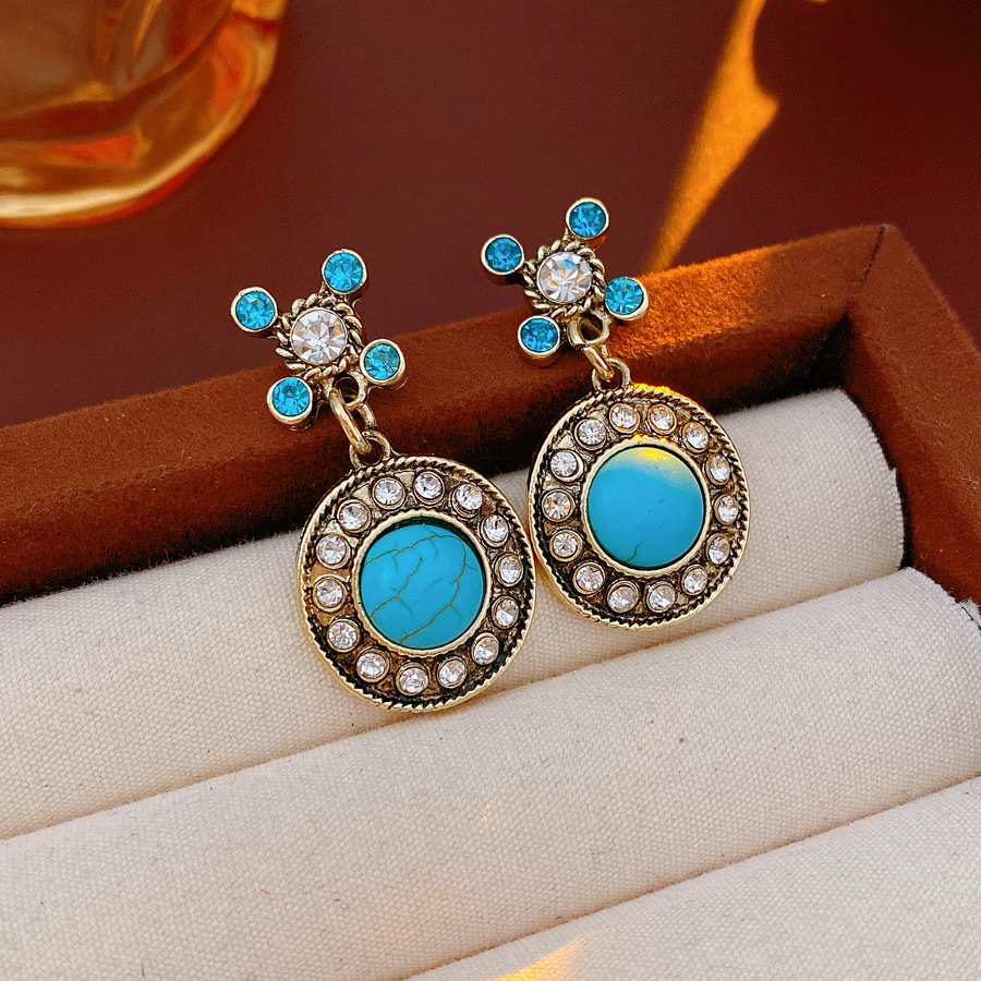 20# silver needle-rhinestone stone round retro palace style eardrops stud earrings