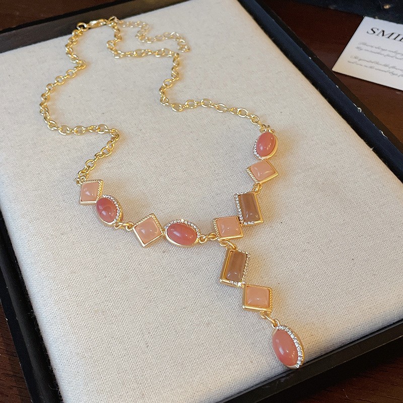 23# necklace-diamond natural stone round oval stitching