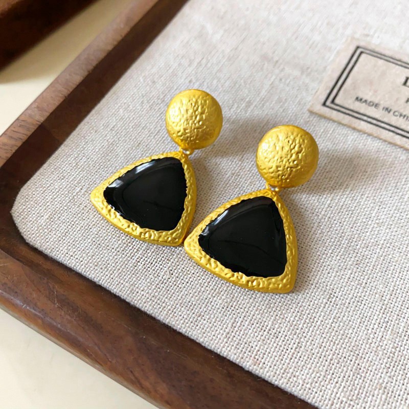 44# silver needle – oil-drip triangle earrings