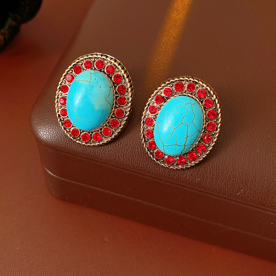 7# silver needle-oval gemstone earrings