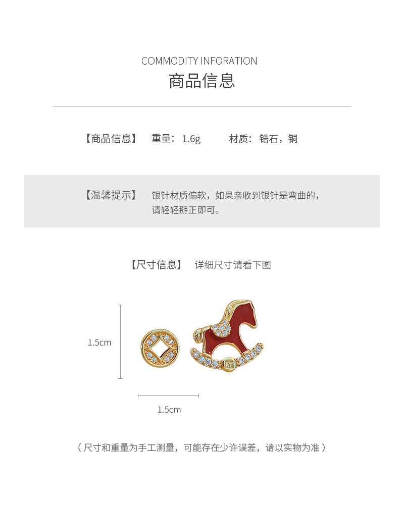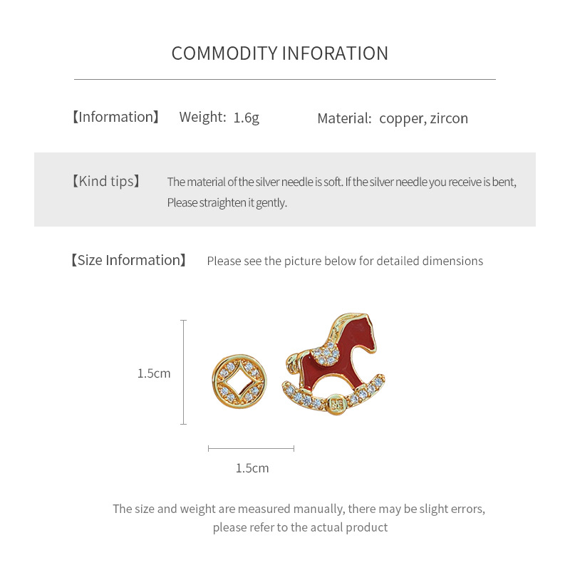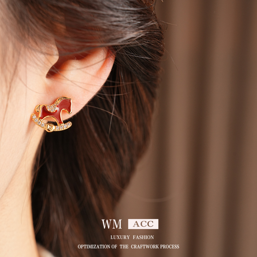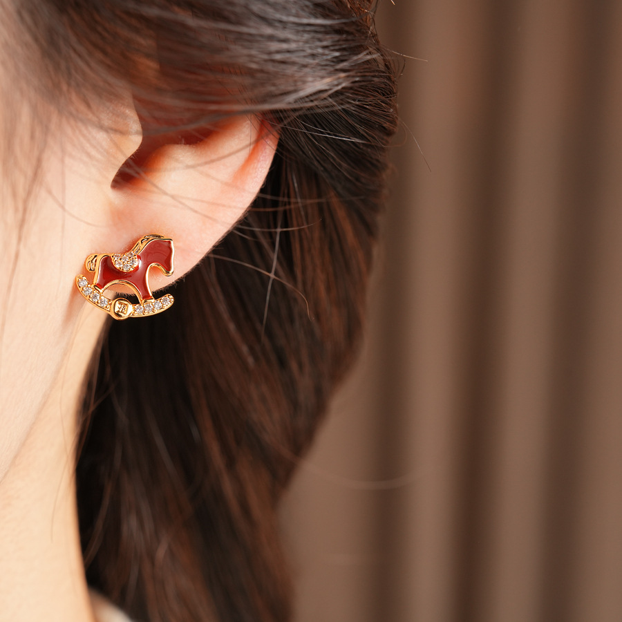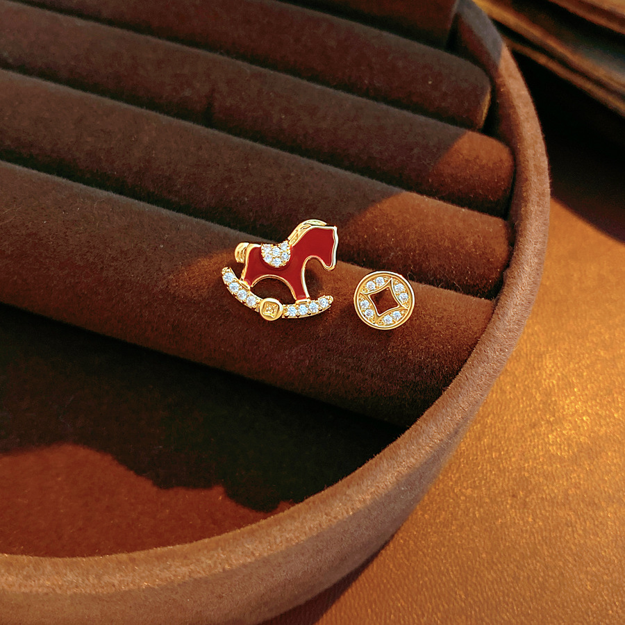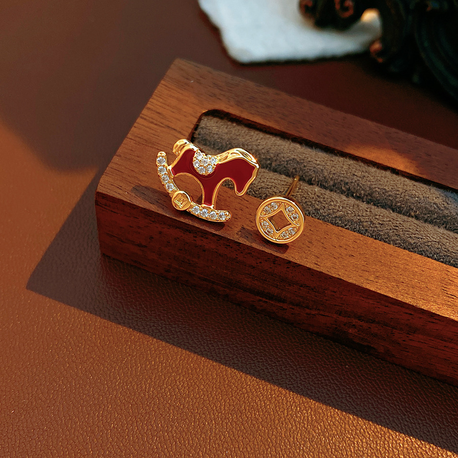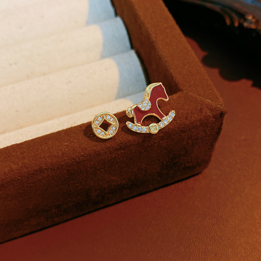 year of birth silver needle zircon copper coin pony earrings fashion exquisite and versatile ear studs light luxury high-grade earrings wholesale