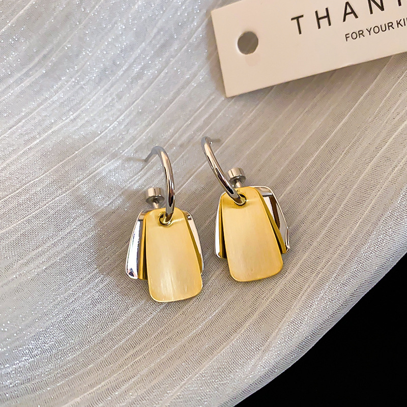 7# ear clip-golden trapezoid (real gold plating)