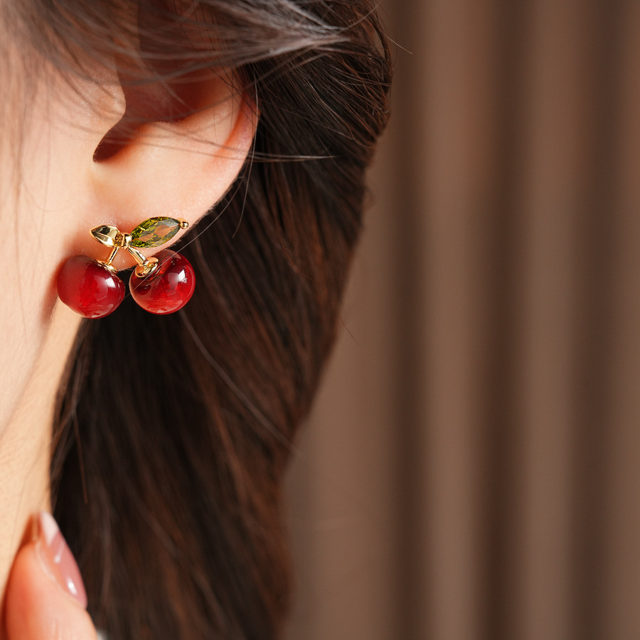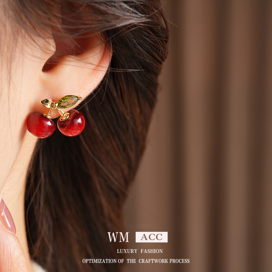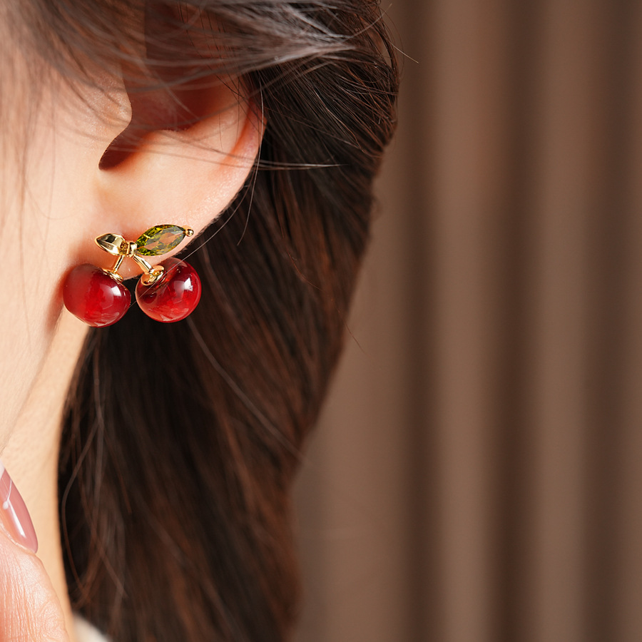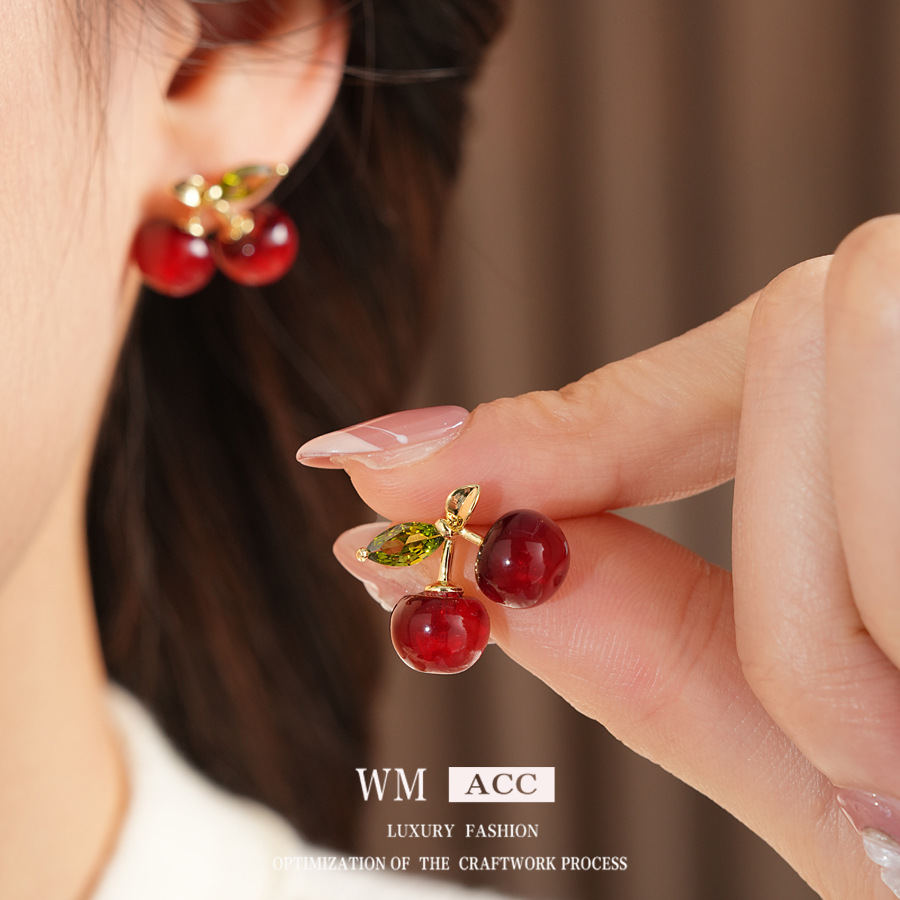 ankela red silver needle resin cherry-shaped earrings stylish sweet all-match stud earrings simple niche high-grade earrings for women