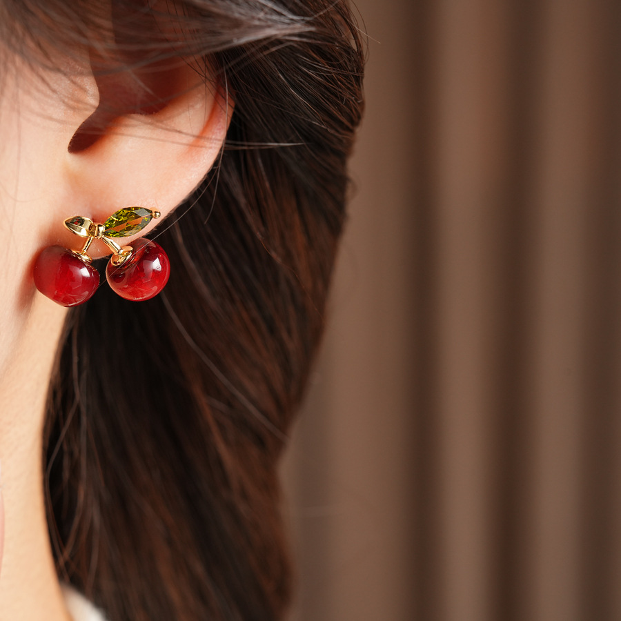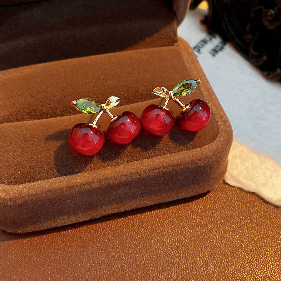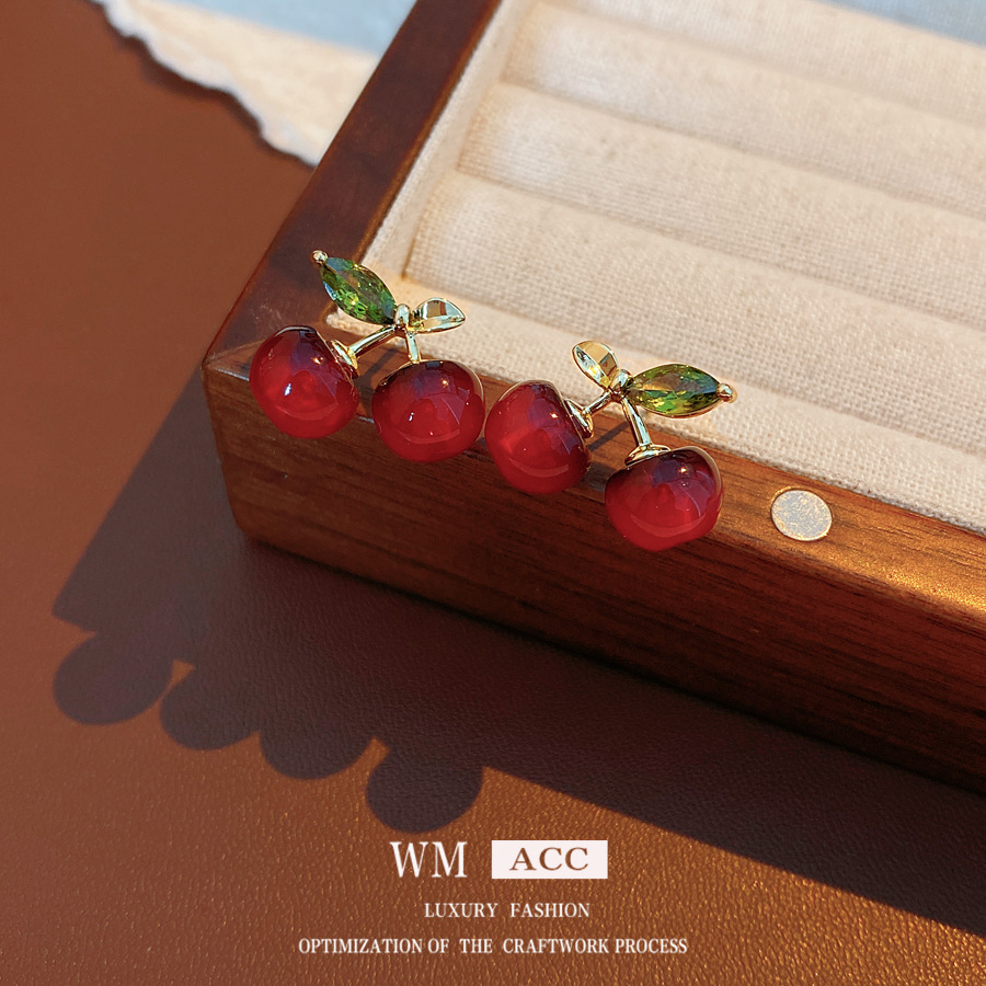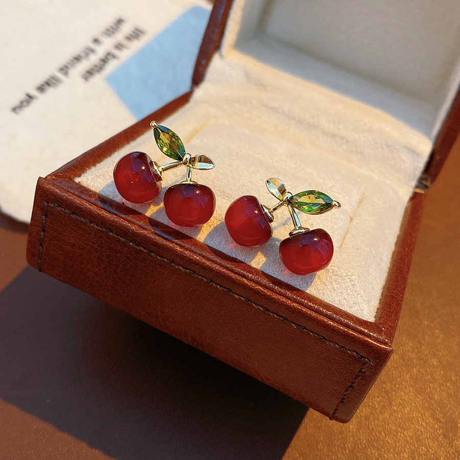 ankela red silver needle resin cherry-shaped earrings stylish sweet all-match stud earrings simple niche high-grade earrings for women