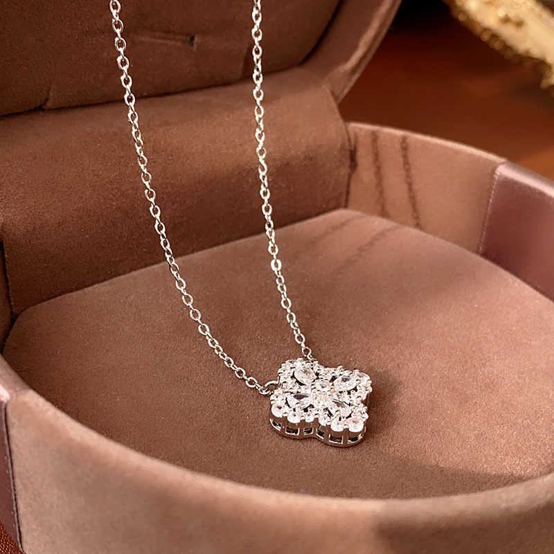 round zircon snowflake artificial pearl pendant necklace
