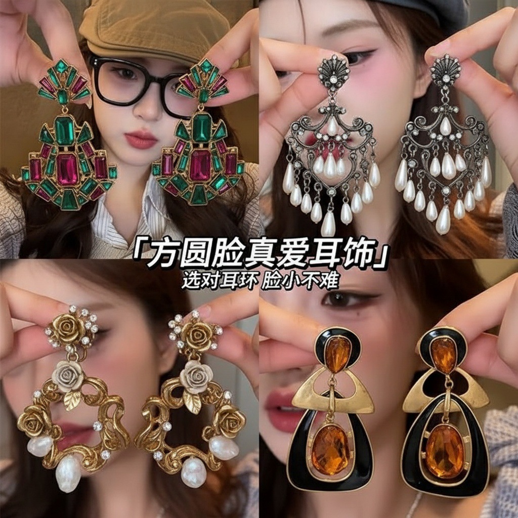 11# silver needle-golden-diamond round oval stud earrings