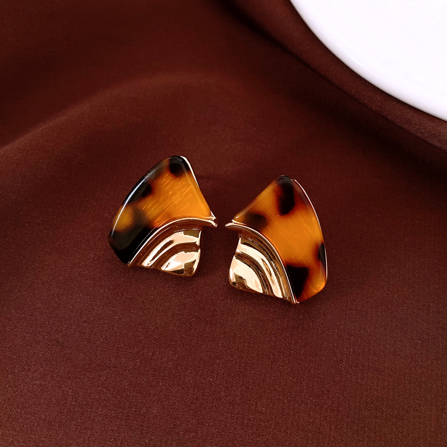 10# silver needle-golden-coffee color-18k real gold plating resin geometry eardrops stud earrings