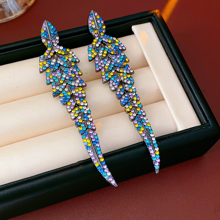 20# steel needle-gun black-diamond leaf multicolored tassel ear studs