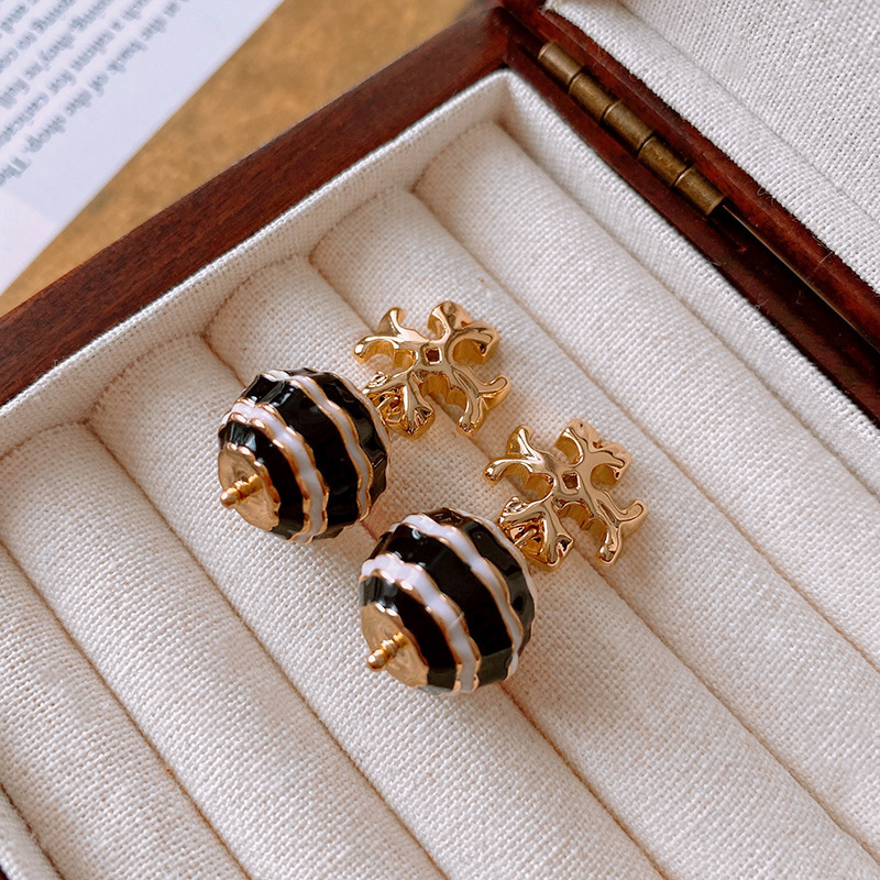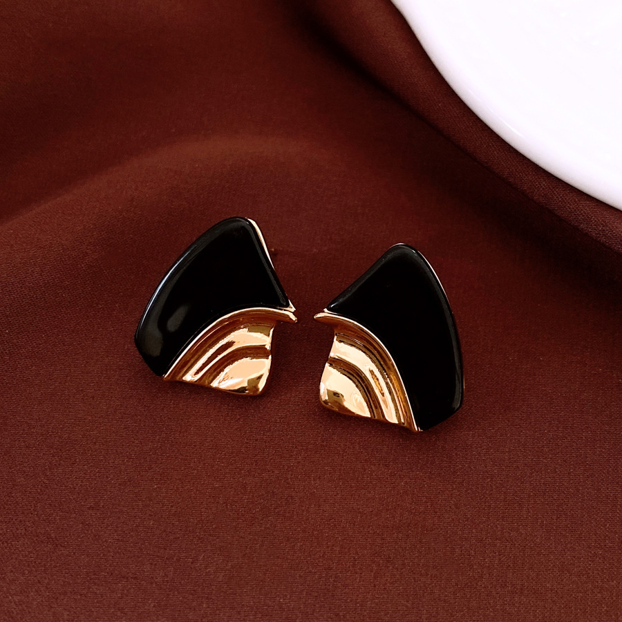36# silver needle-golden-black-drip round h letter leopard print square hollow eardrops stud earrings