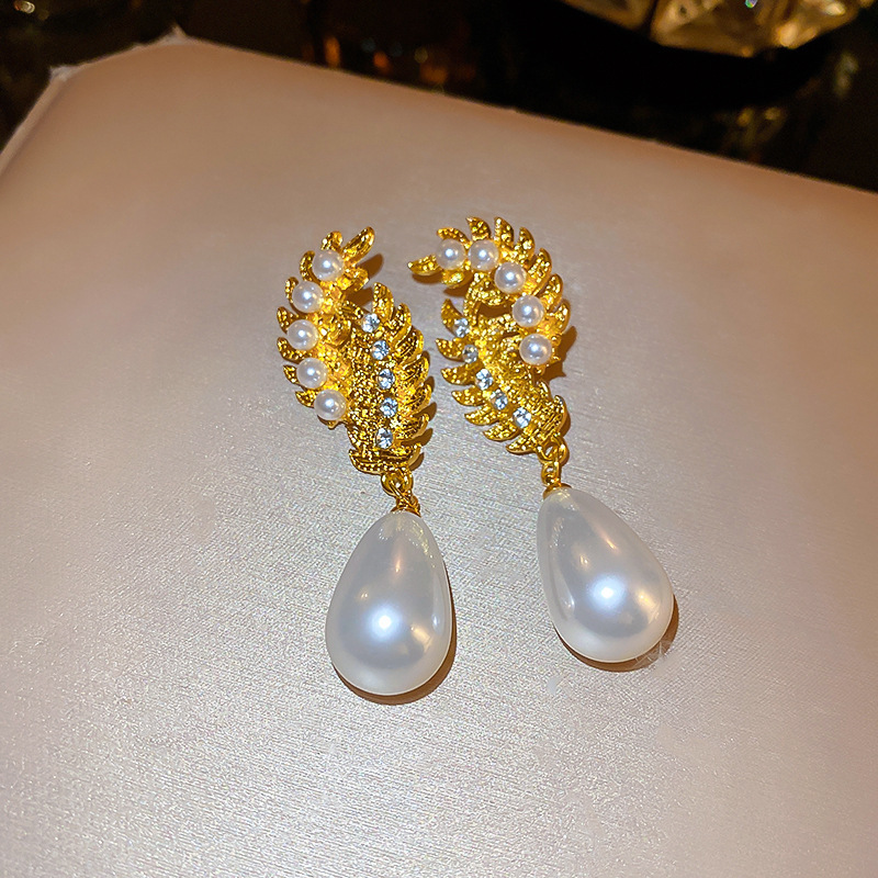 5# silver needle-golden-rhinestone pearl wheat water drop ear studs
