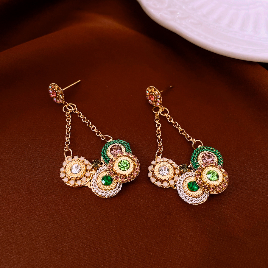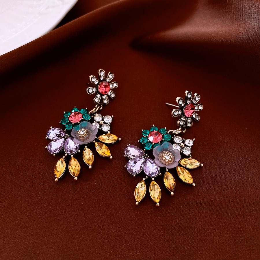 37# silver needle-golden-pink-purple-diamond flower portrait tassel ear studs