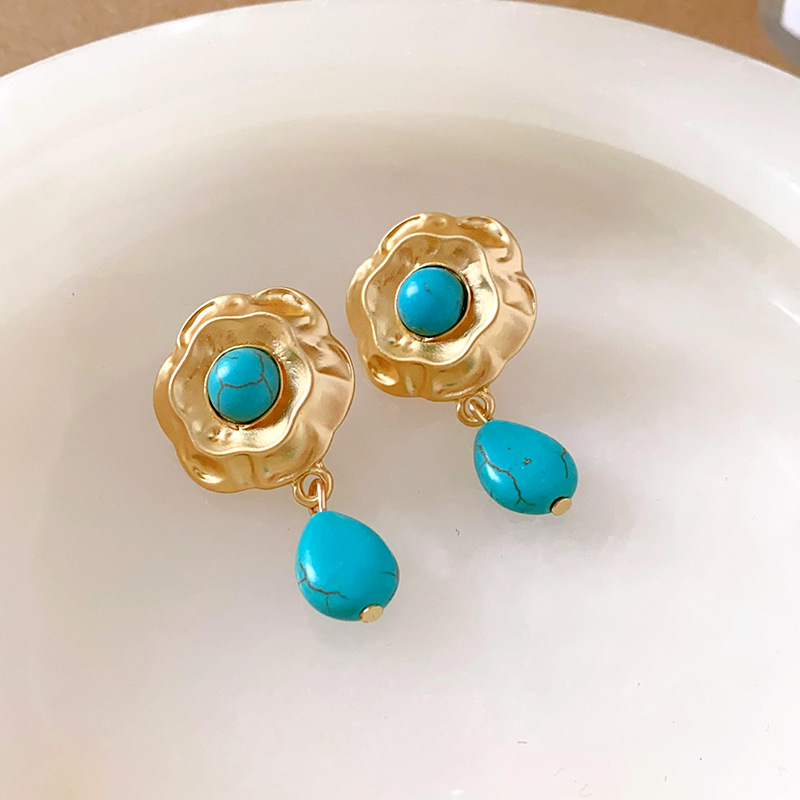 45# silver needle-golden-blue-flower dripping stud earrings