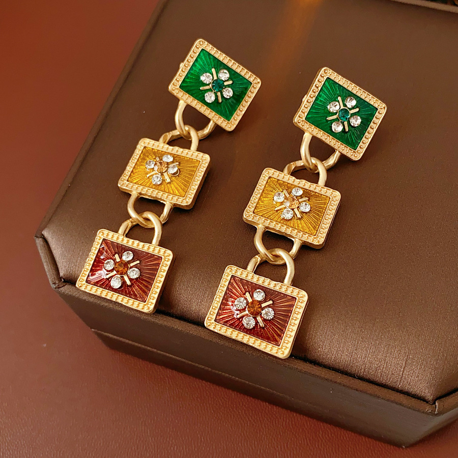33# silver needle-golden-purple-square resin geometric tassel stud earrings