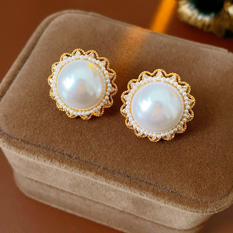 25# silver needle-golden-transparent-rhinestone pearl carved eardrops stud earrings