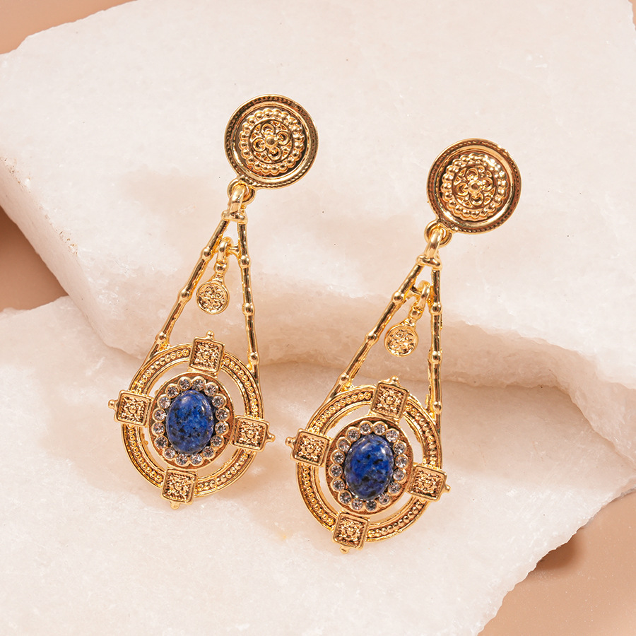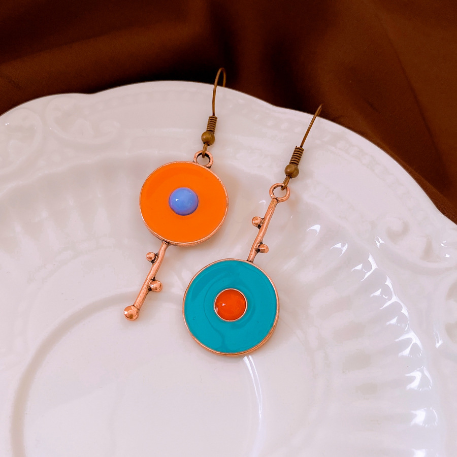 22# bronze-orange-blue-drip round pendant asymmetric ear hook