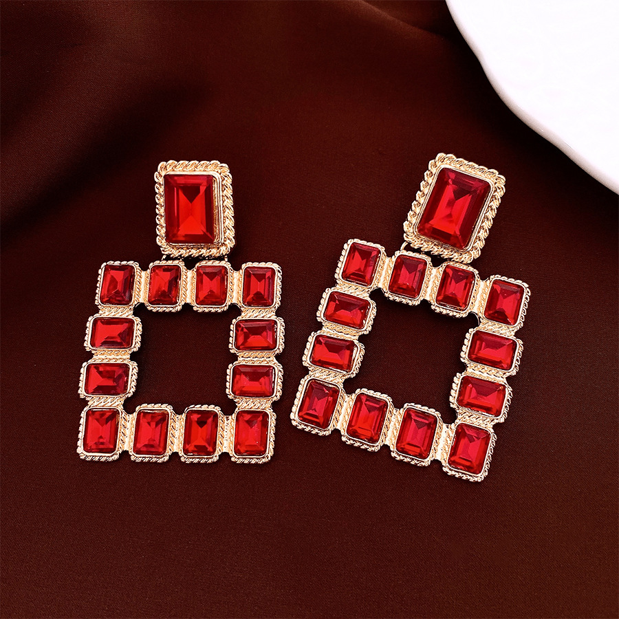 14# silver needle-golden-red-diamond square hollow eardrops stud earrings