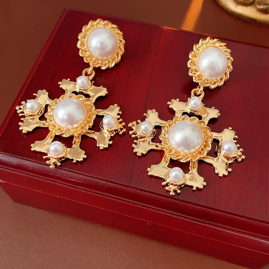 2# silver needle-golden-white cross pearl eardrops stud earrings