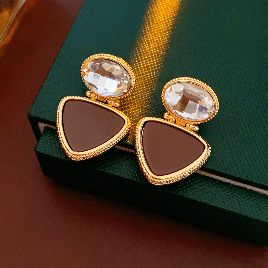 13# silver needle-golden-coffee color-18k real gold plating diamond oval eardrops stud earrings