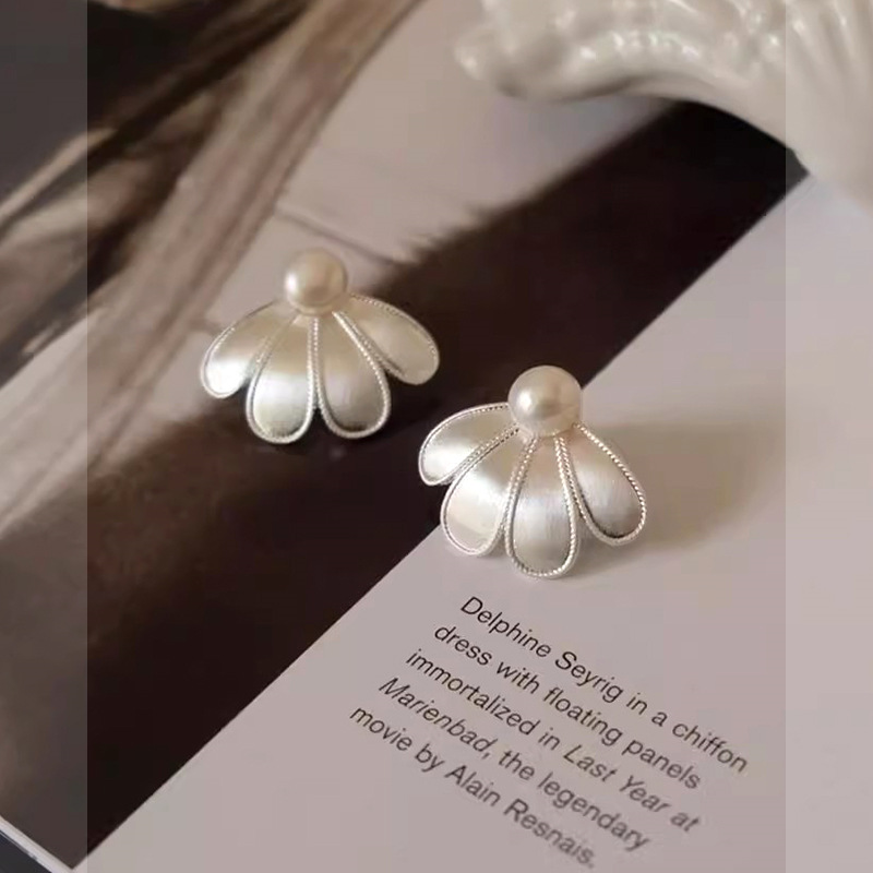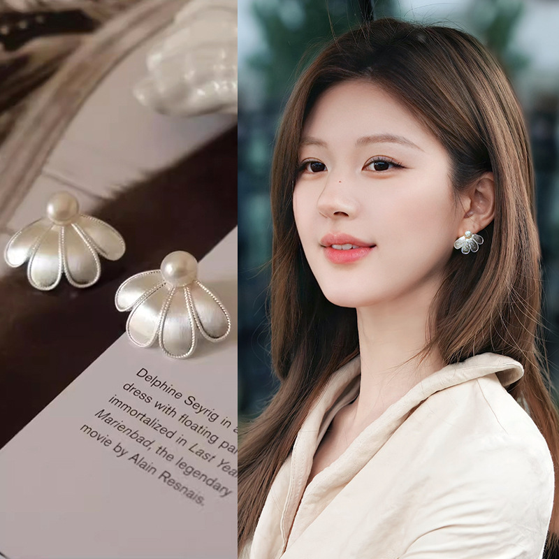 zhao lusi same style silver needle petal pearl earrings french style retro elegant earrings niche high-grade earrings wholesale