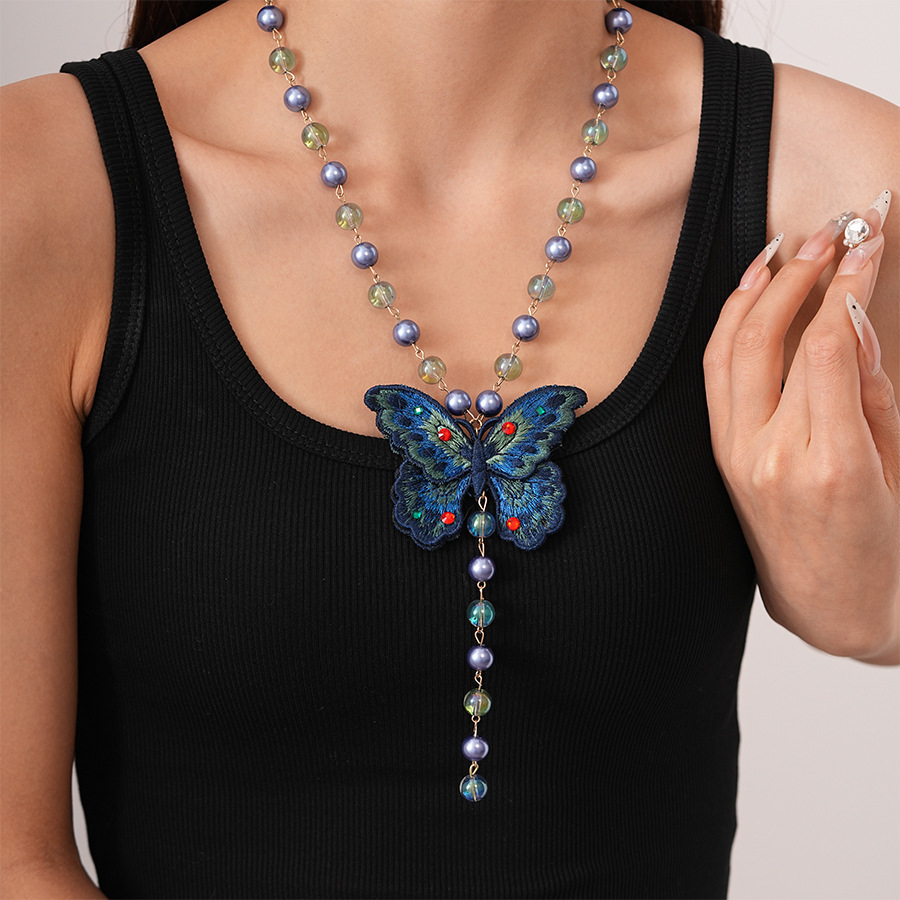diamond woven butterfly pattern micro glass bead pendant necklace (10mm)