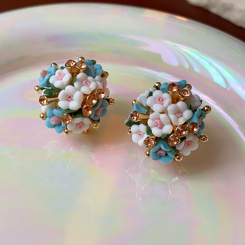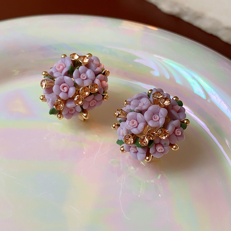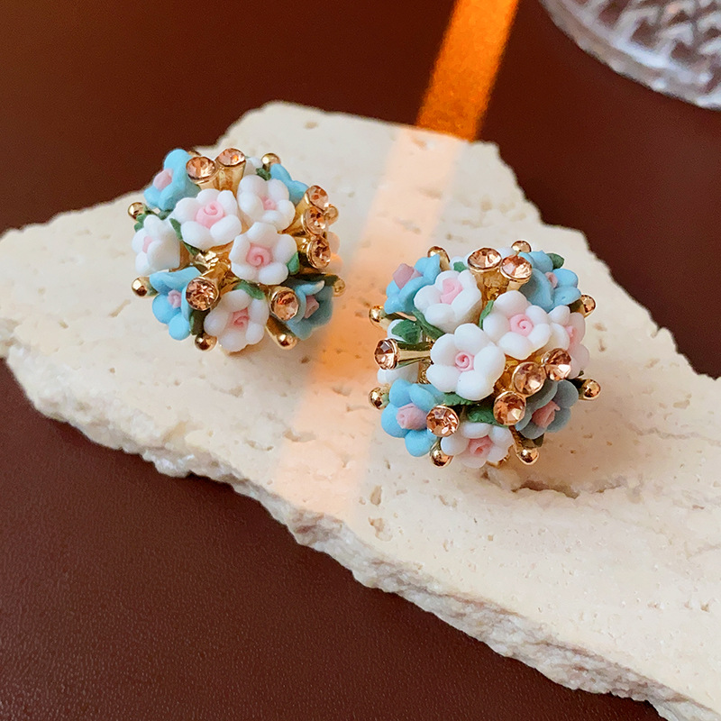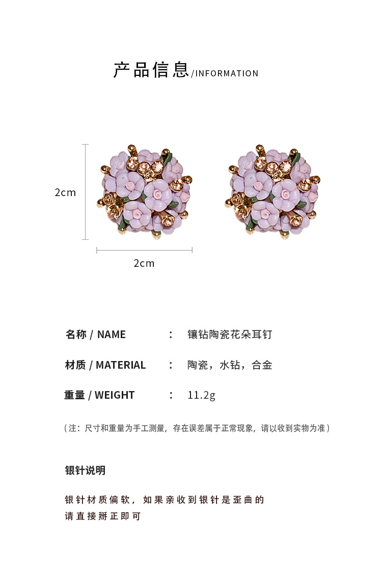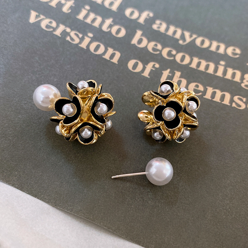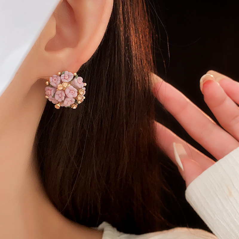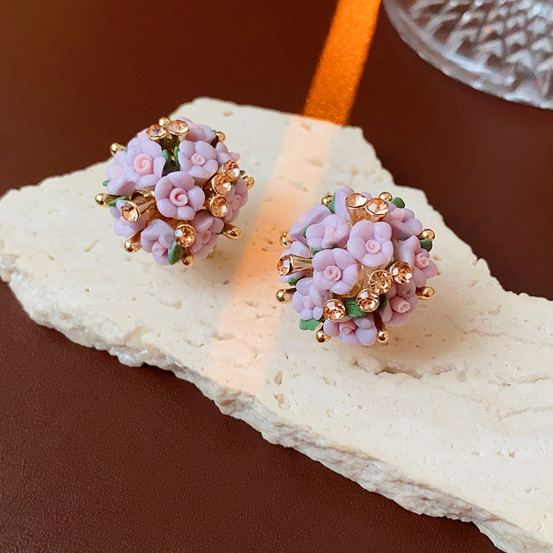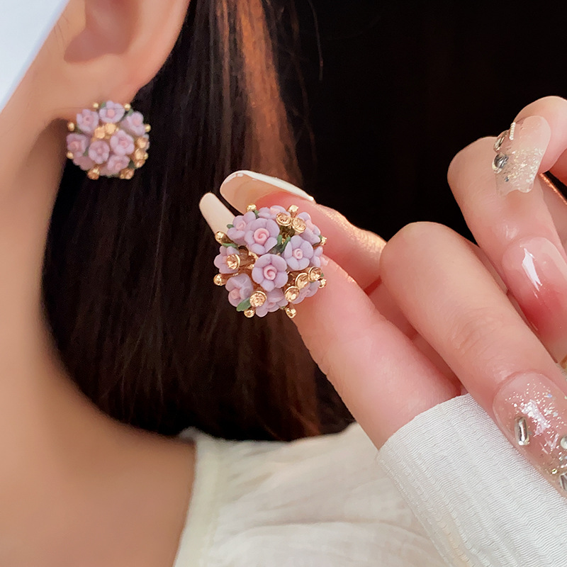 silver needle zircon pearl flower ball flower cluster earrings