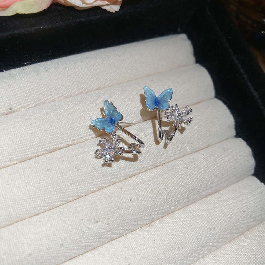 14# silver needle zircon flower resin butterfly studs