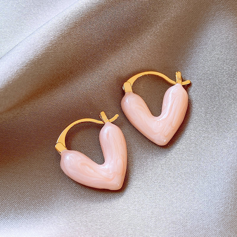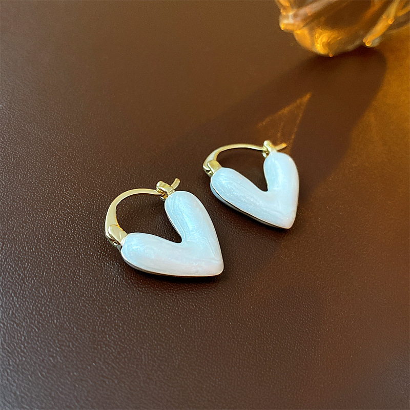 no. 6 white oil-drip heart ear clip (real gold plating)