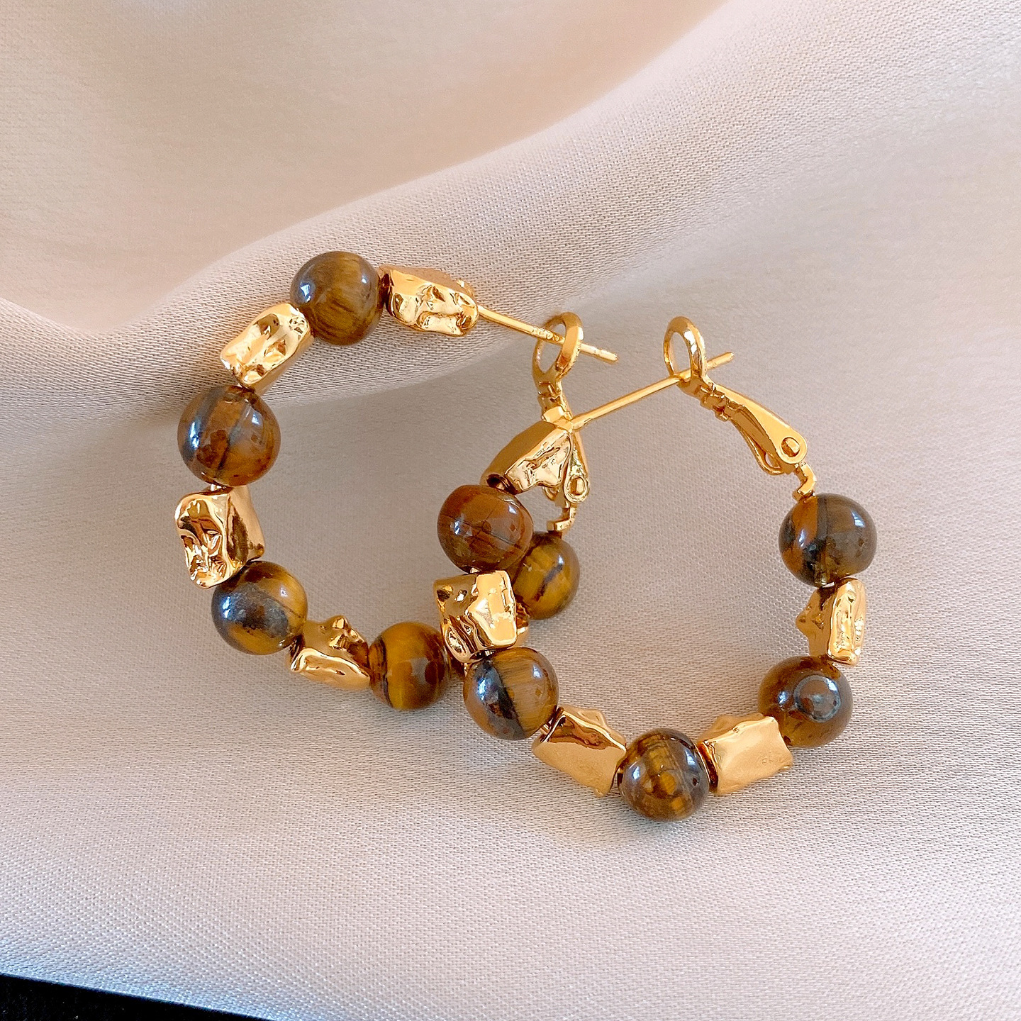 30# tigereye round earrings (real gold plating)