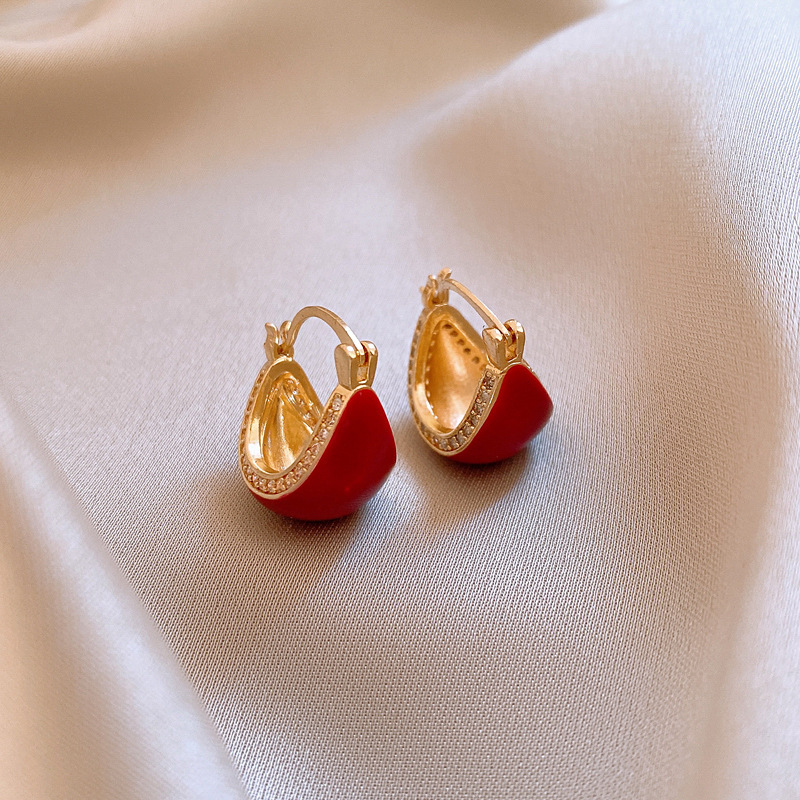 11# dark red love oil dripping ear clip