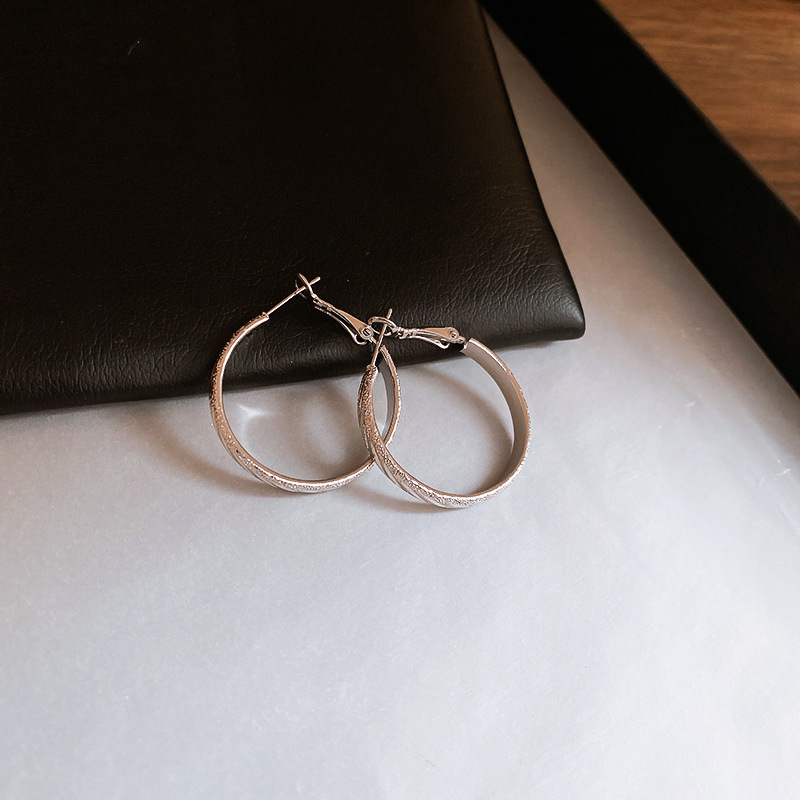 1# silver needle round ring earrings