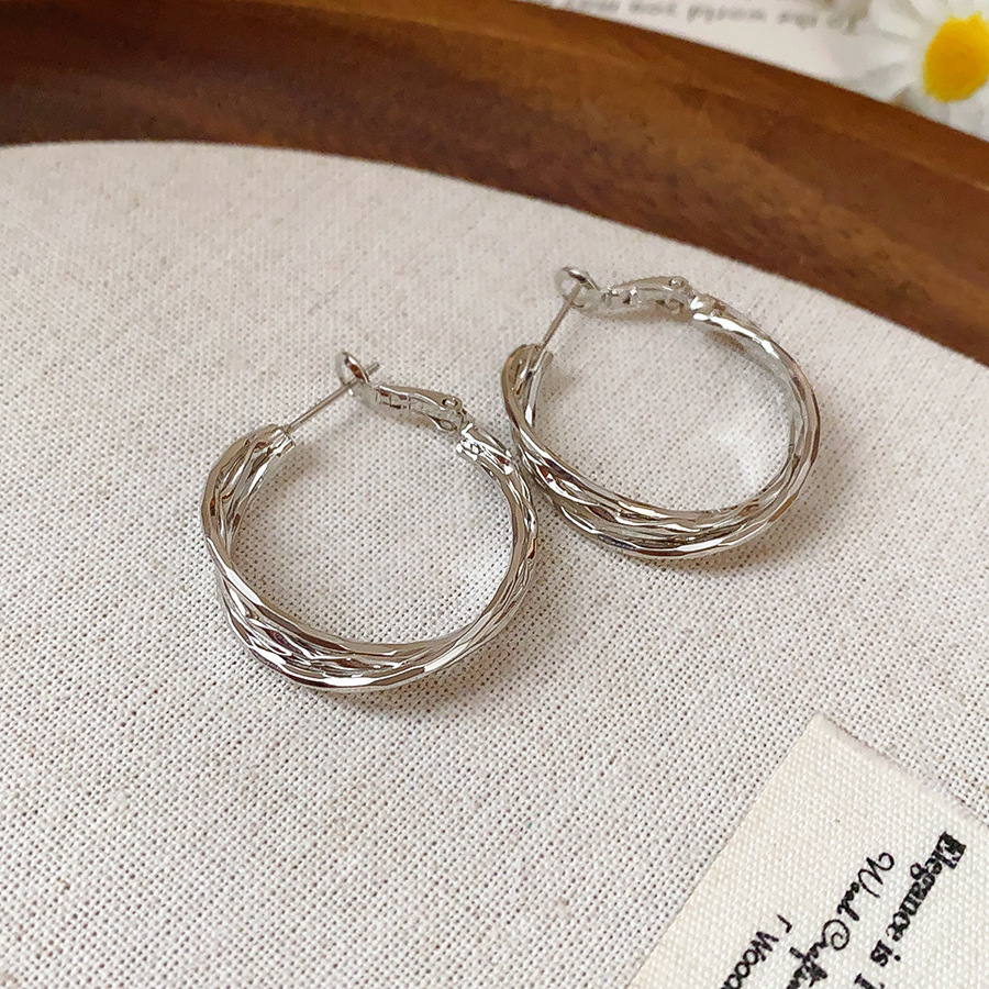 16# silver needle twisted ear ring