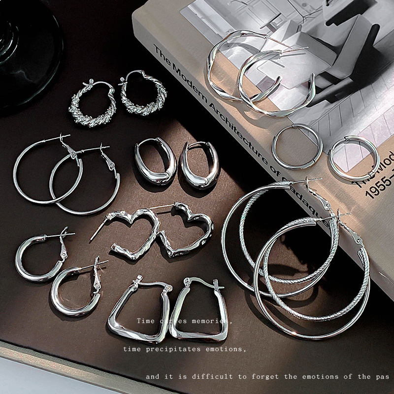9# silver needle irregular round earrings