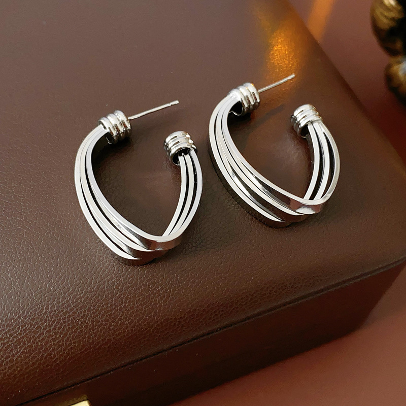 3# silver needle c- shaped ear studs