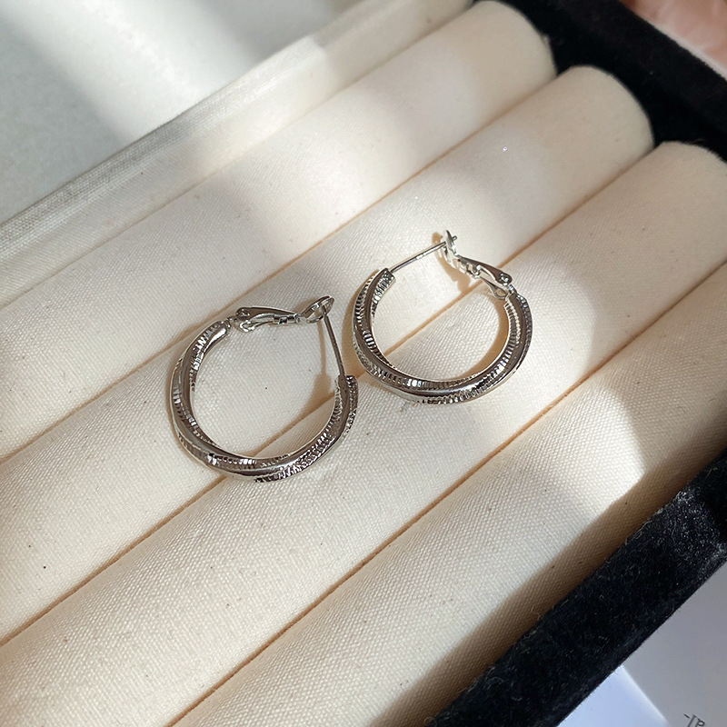 11# silver needle round pleated stripes ear ring