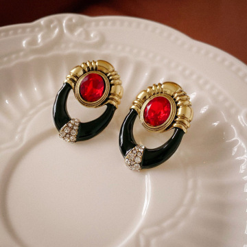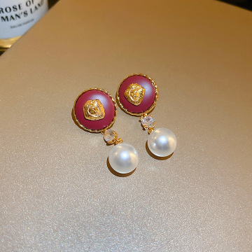 57# silver needle lovely drop oil pearl diamond stud earrings