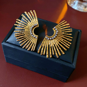 1# silver stud rhinestone-encrusted fan shaped stud earrings