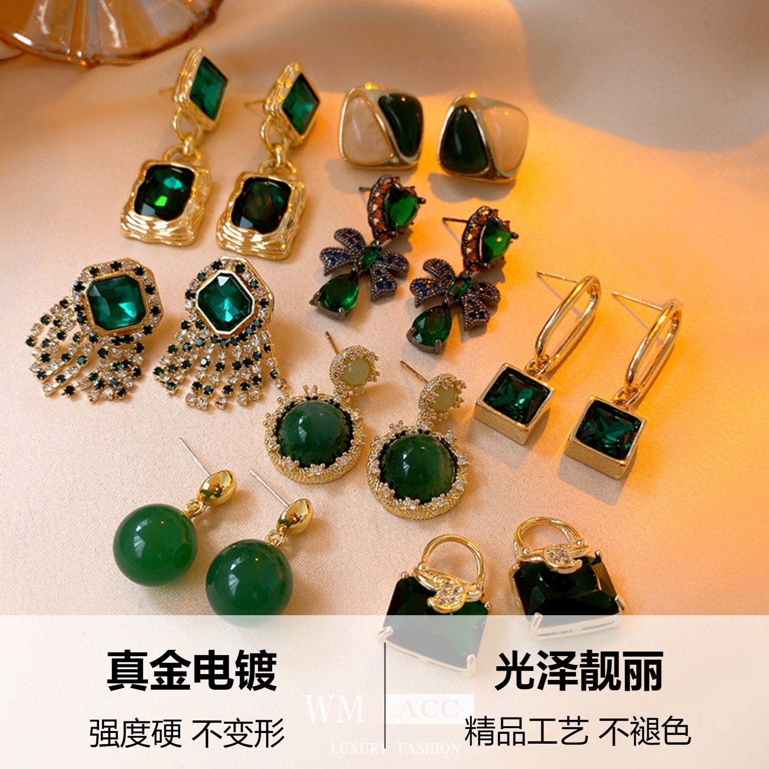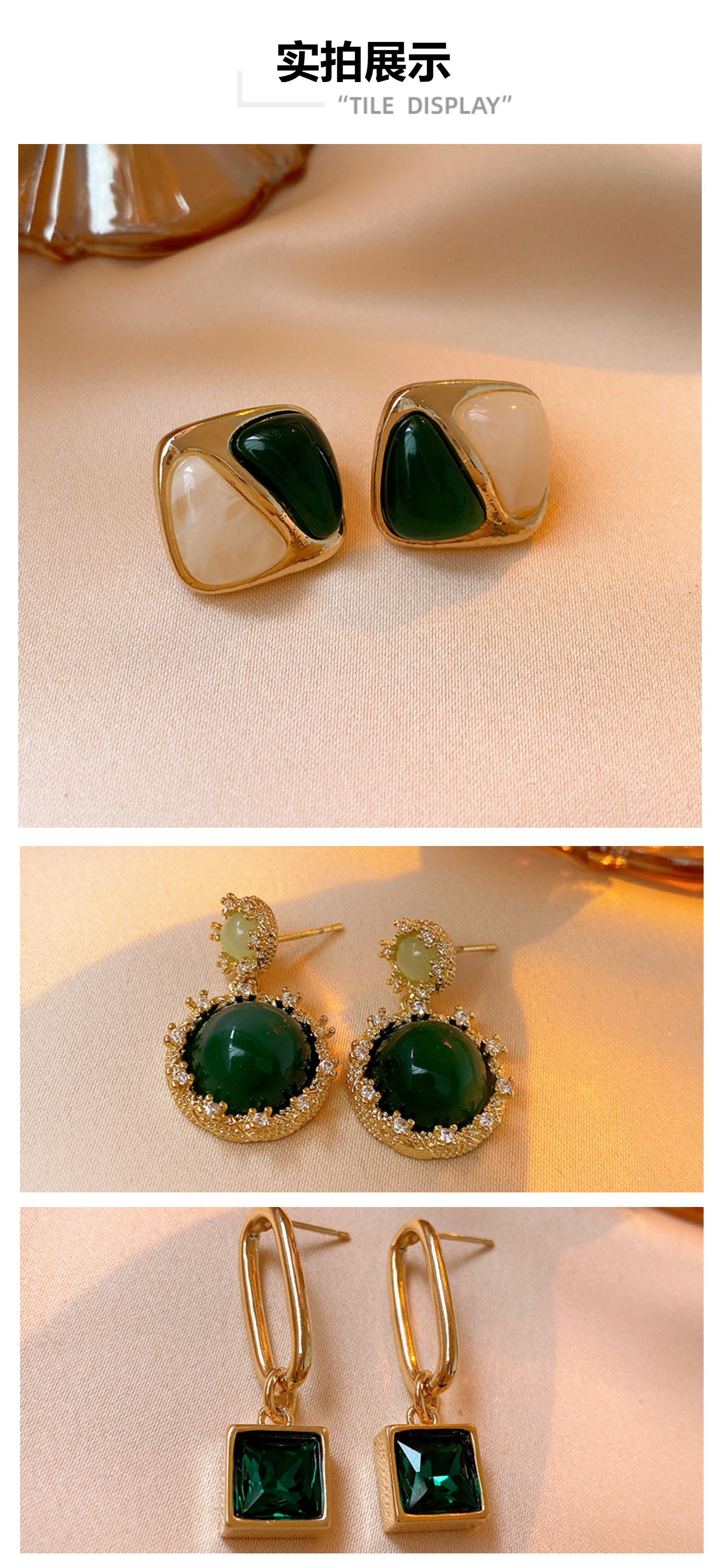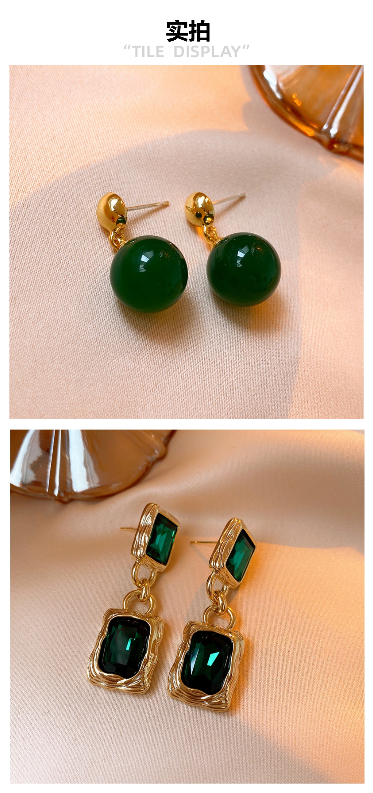 green-oval earrings