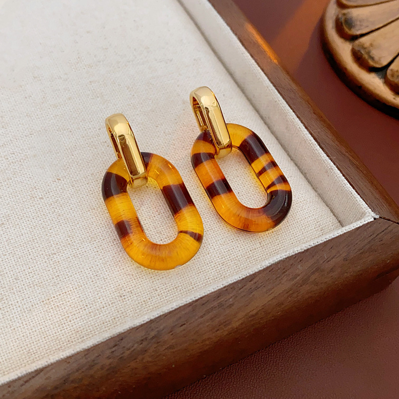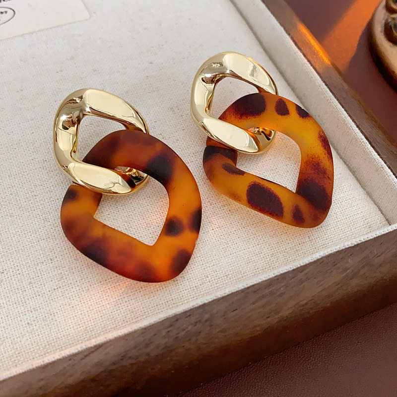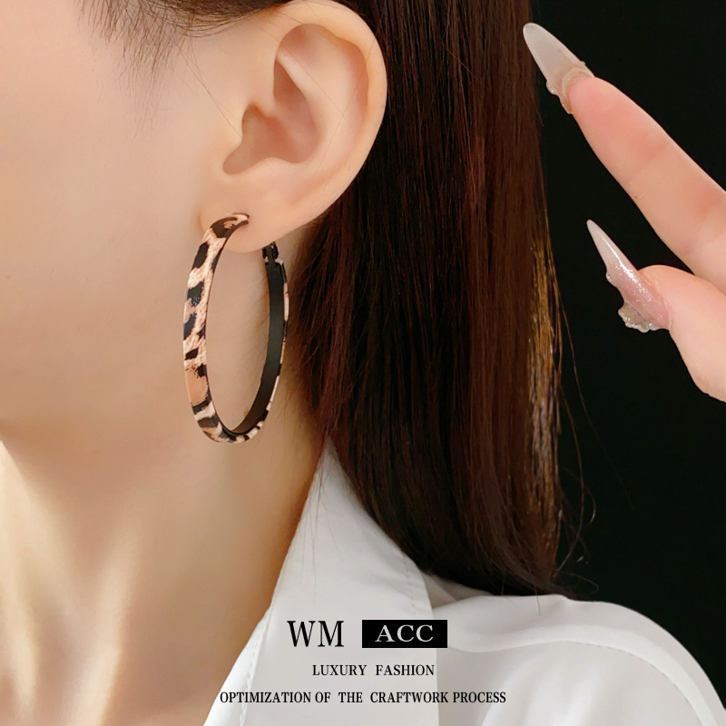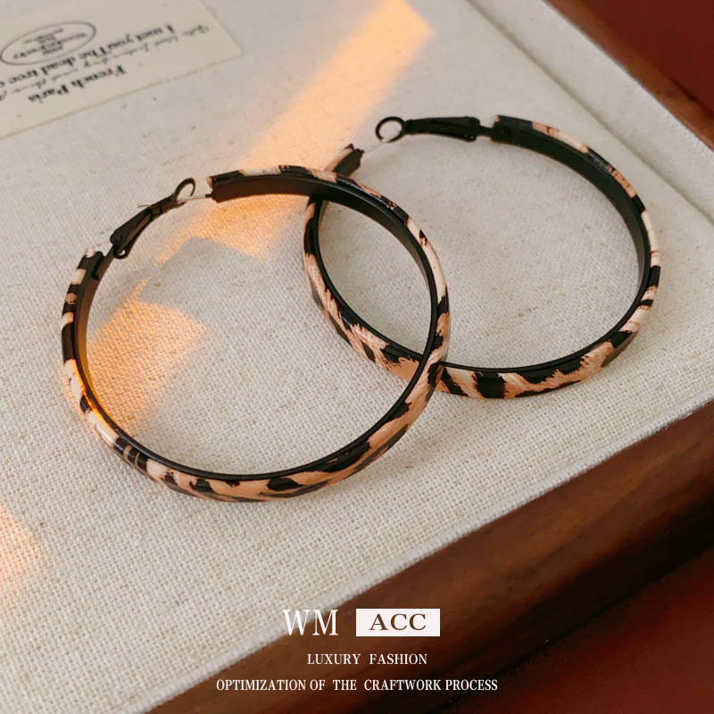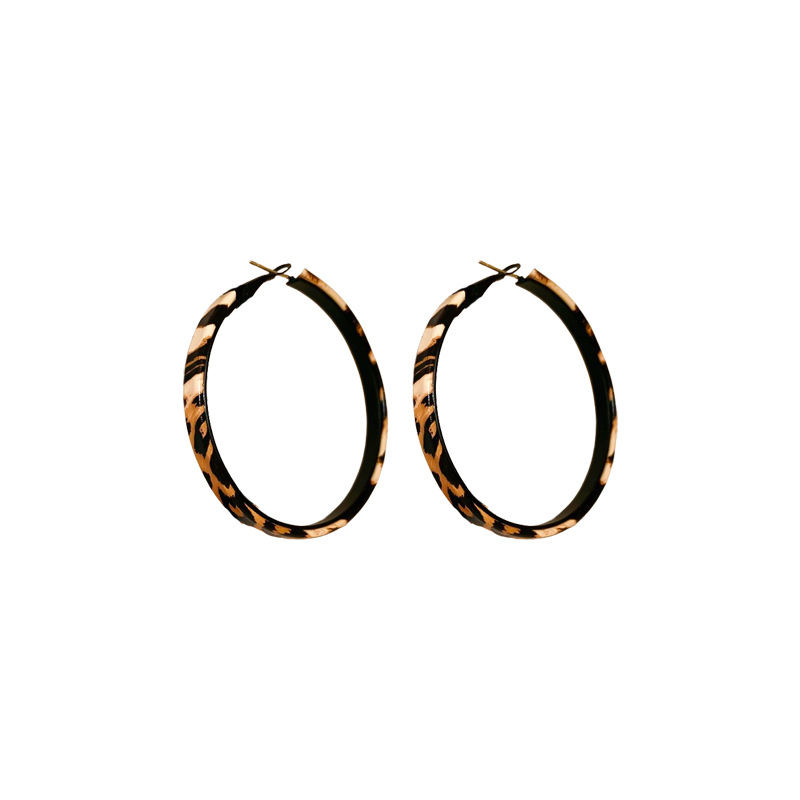 silver needle leopard geometric round ring earrings