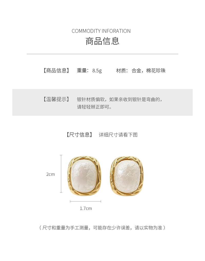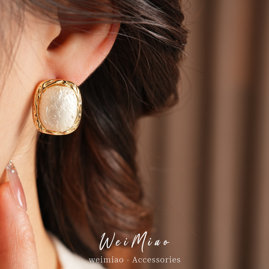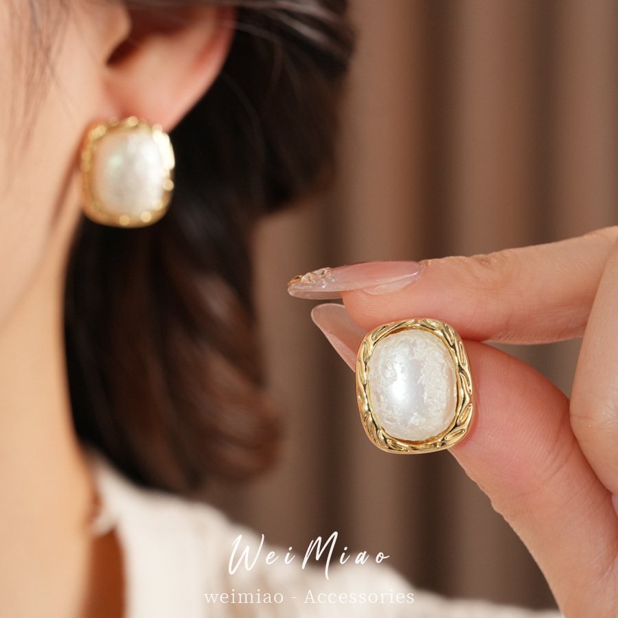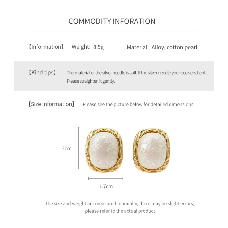 square cotton pearl earrings new popular high-grade earrings french style light luxury and simplicity design earrings wholesale
