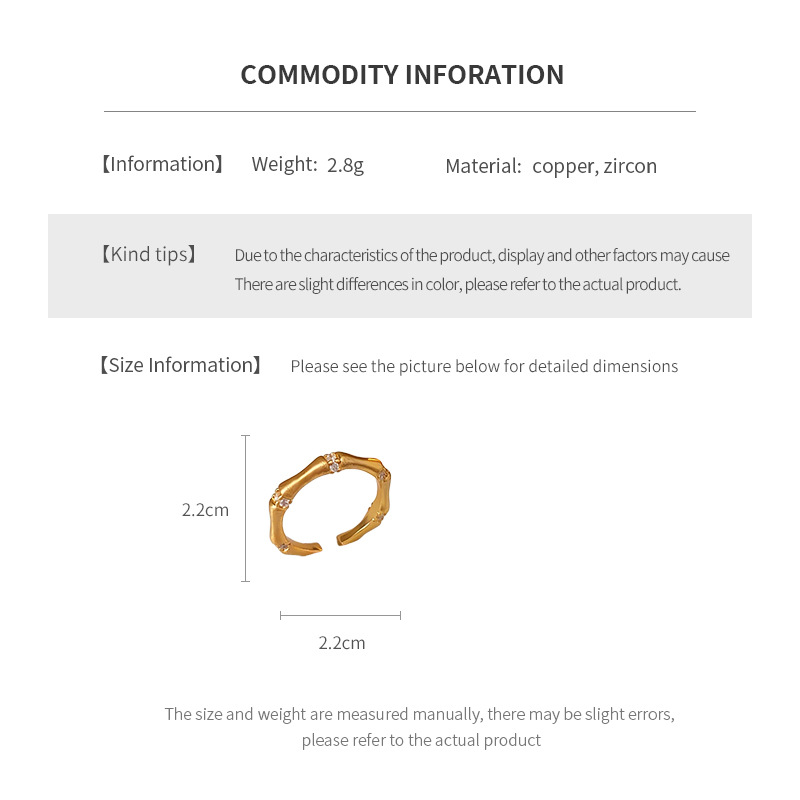8# oil dripping bamboo joint open-end zircon ring