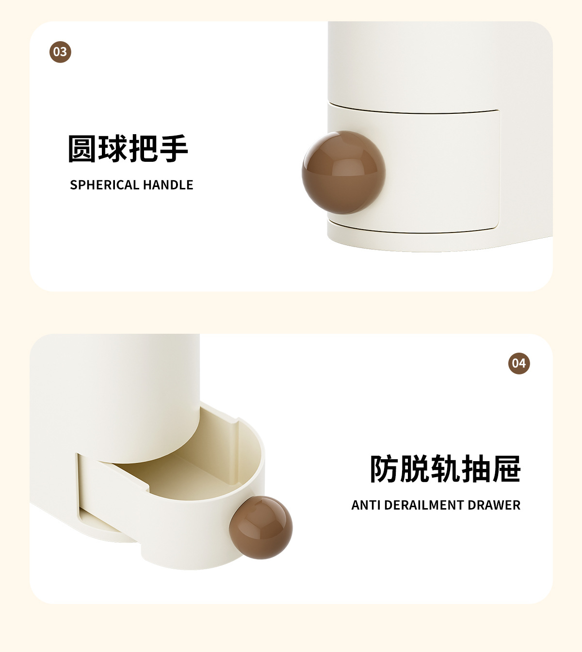Material: Main body and drawer are HIPS; handles are PP.
