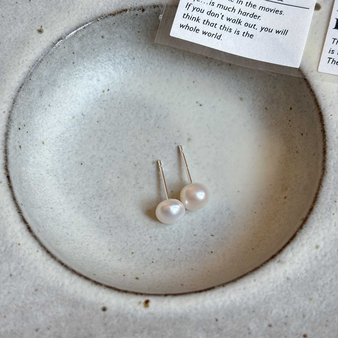 white-4mm silver needle freshwater pearl ear studs