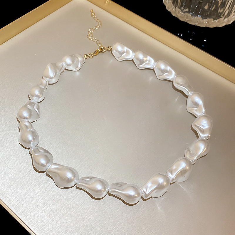white-irregular-irregular pearl necklace