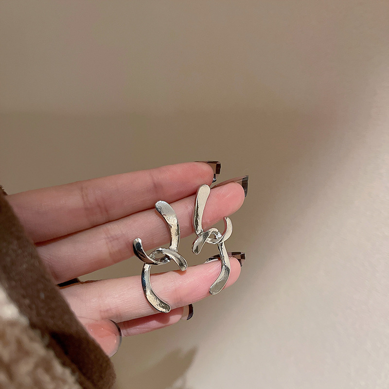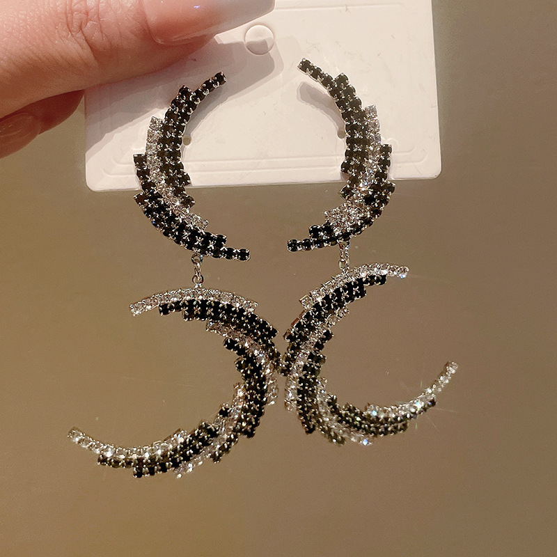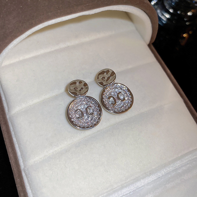 silver needle zircon c- shaped stud earrings