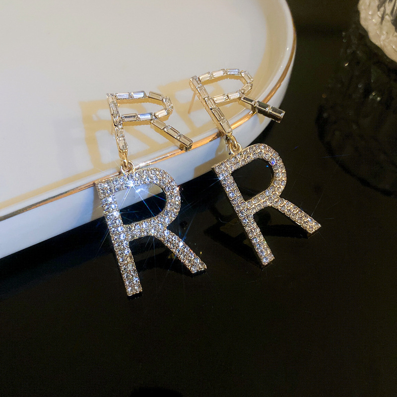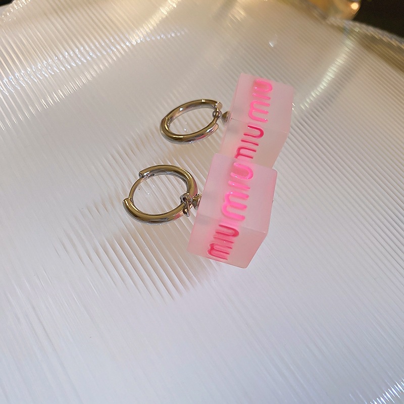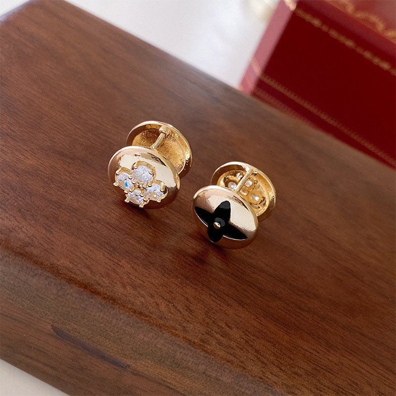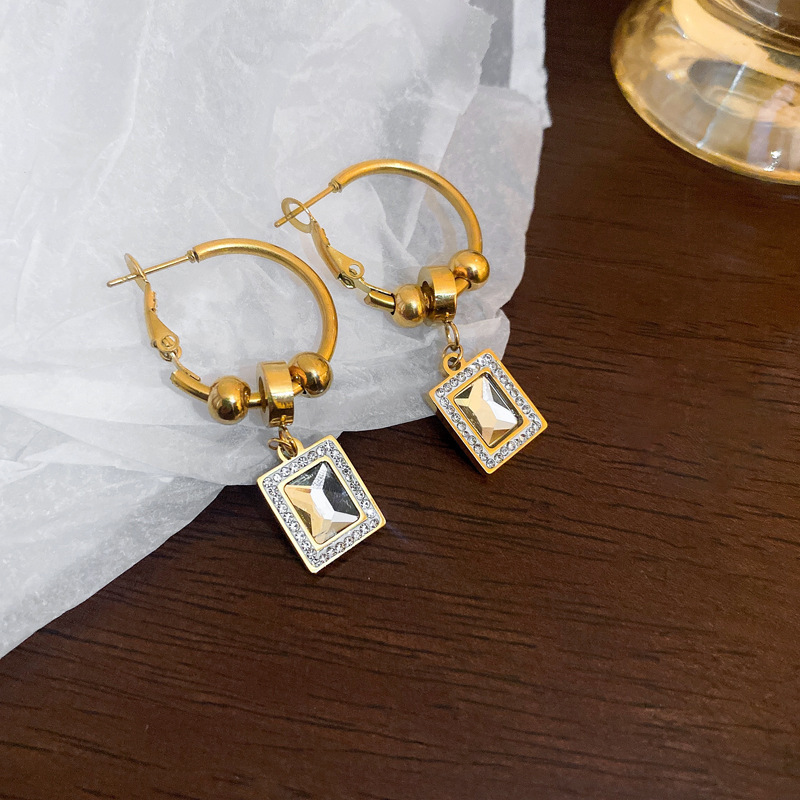 17# titanium steel square diamond-encrusted ear ring