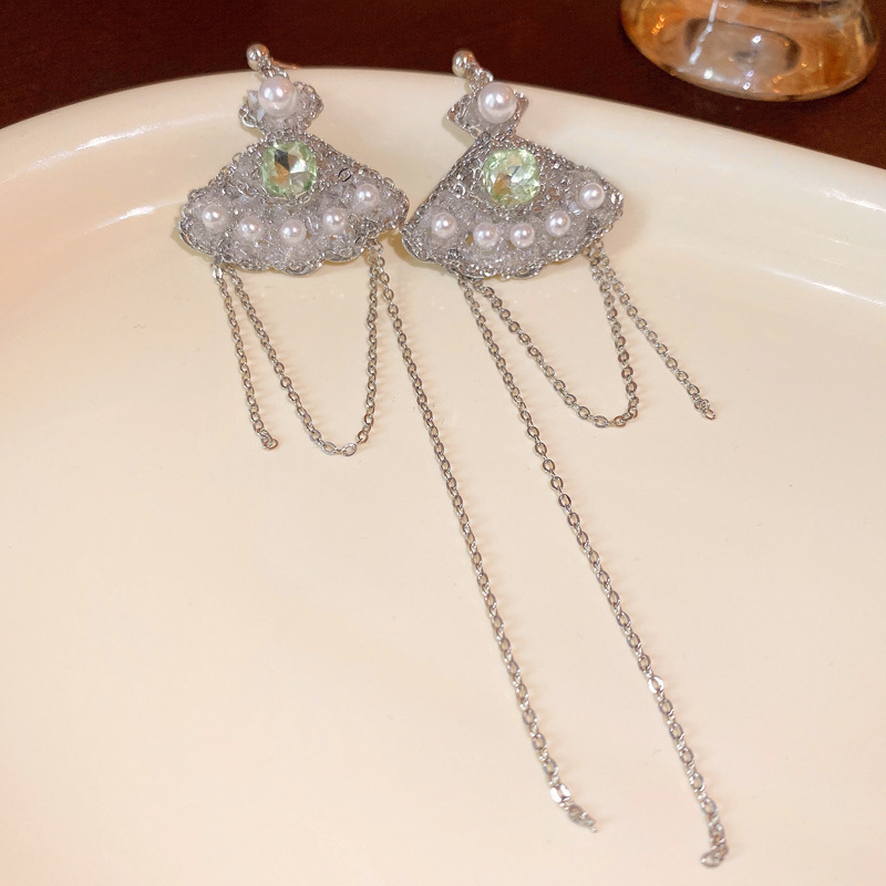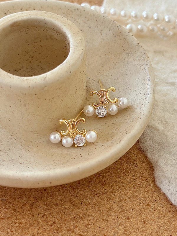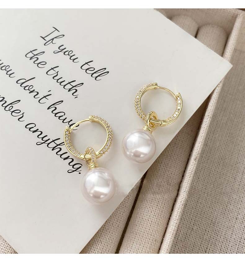 20#925 silver needle zircon round pearl ear clip