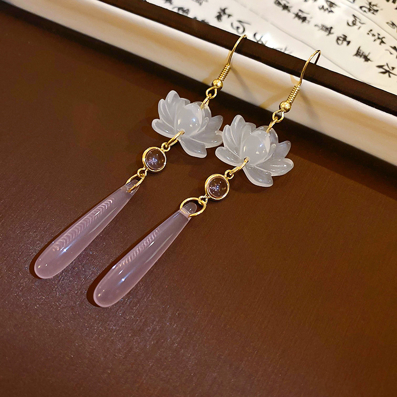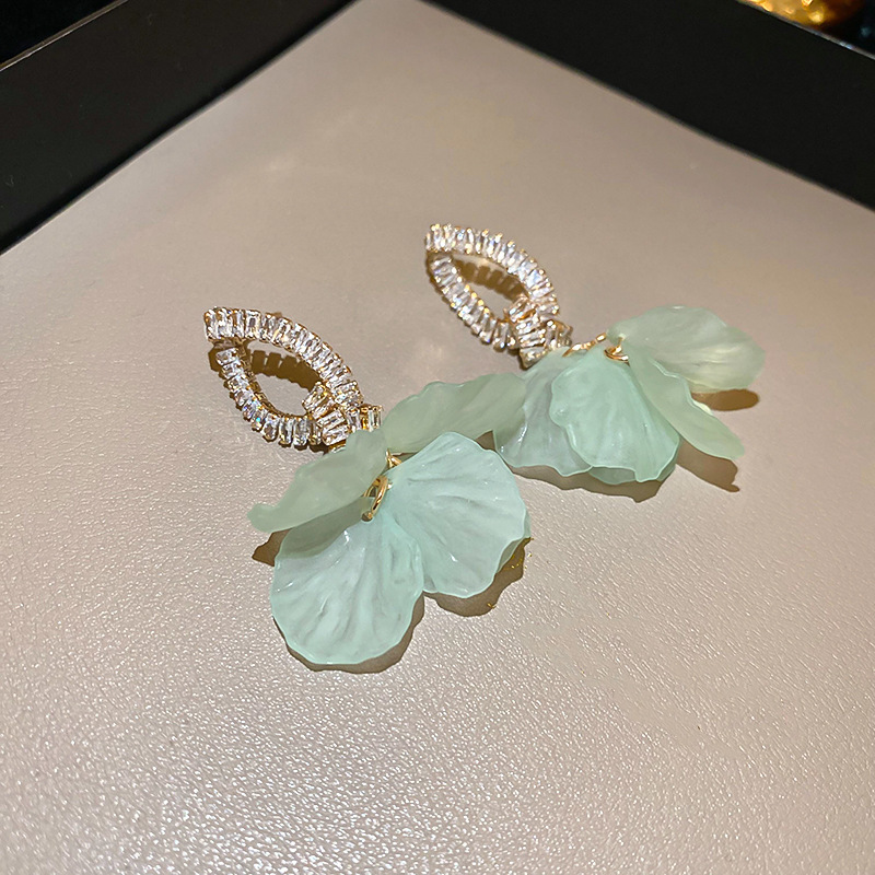 silver needle blue transparent resin flower stud earrings