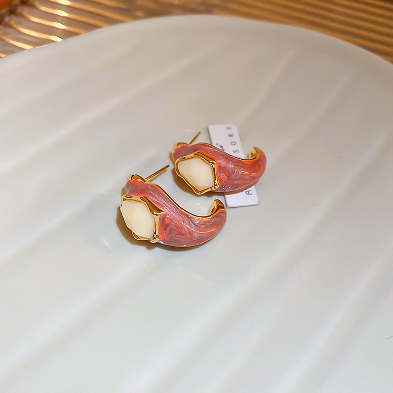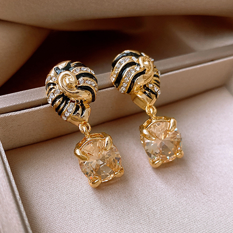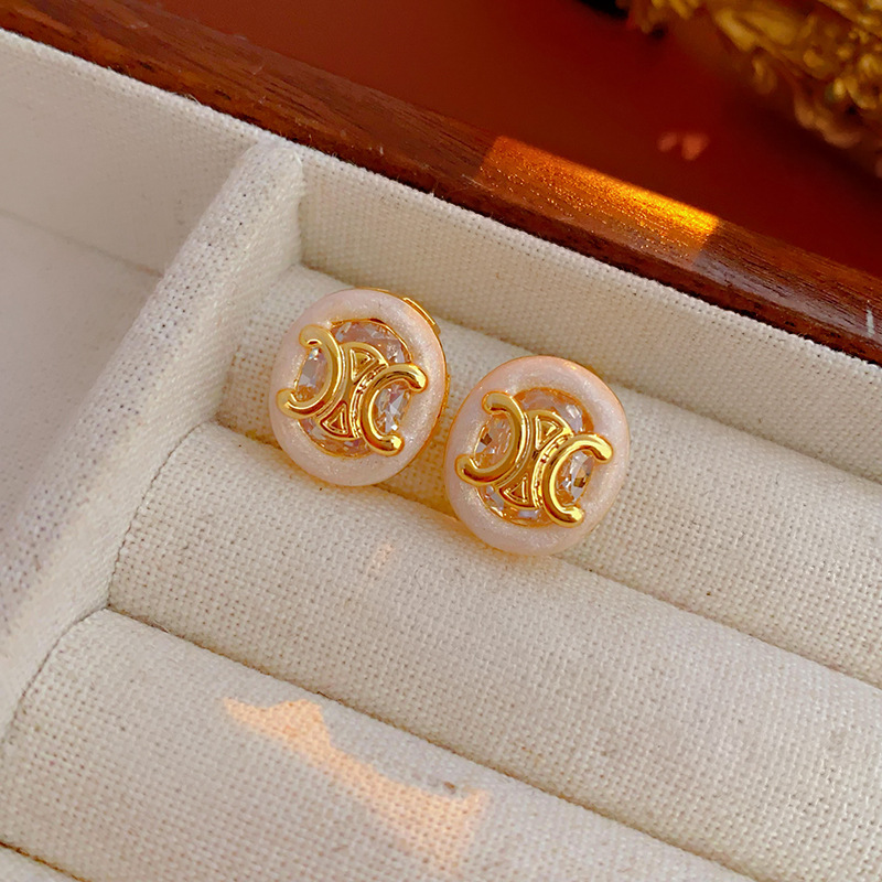 45# silver needle zircon dripping conch ear studs (real gold plating)