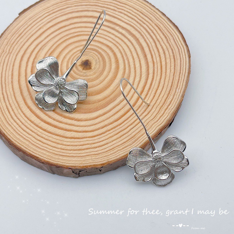 18#925 silver needle zircon flower stud earrings